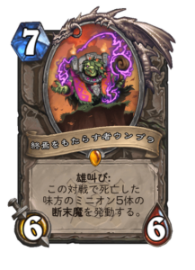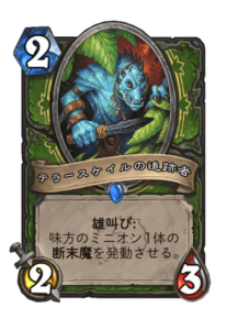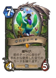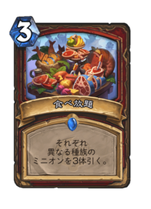 ①最速プランとして、5ターン目で雷無宜刃を装備して、6ターン目に食べ放題を発動して、大型ミニオンを召喚し、そして7ターン目にサスクァーッでおかわりをお見舞いする。